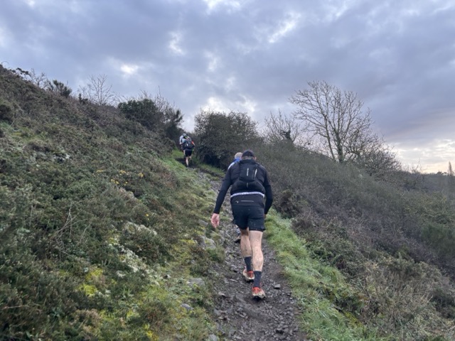 2km plus loin, je me vautre lamentablement dans une mare de boue. Fort heureusement, j’arrive à me rattraper sur les avant-bras et j’évite de m’étaler complètement dedans. Ça aurait été joli ! Pas de bobo, donc je repars de plus belle. Je commence à doubler quelques coureurs au fur et à mesure que je me rapproche de Plérin sur les sentiers escarpés mais toujours avec une météo sèche et un ciel dégagé.