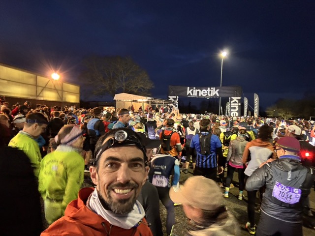 Le contexte n’est clairement pas l’idéal. Depuis le record sur marathon à La Baule en novembre dernier, je traine ma jambe droite et je n’ai fait que 3 sorties de plus de 20km (max 23km). L’osthéo m’a aussi préconisé de limiter le volume en janvier. Si on ajoute la fatigue et la boue, les bookmakers ont mis une côte énorme sur ma tête !