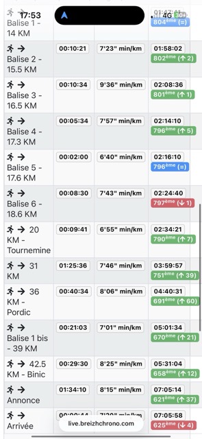Je termine tout de même 625ème avec une belle remontée dans la deuxième partie de course, conforme au plan prévu.
