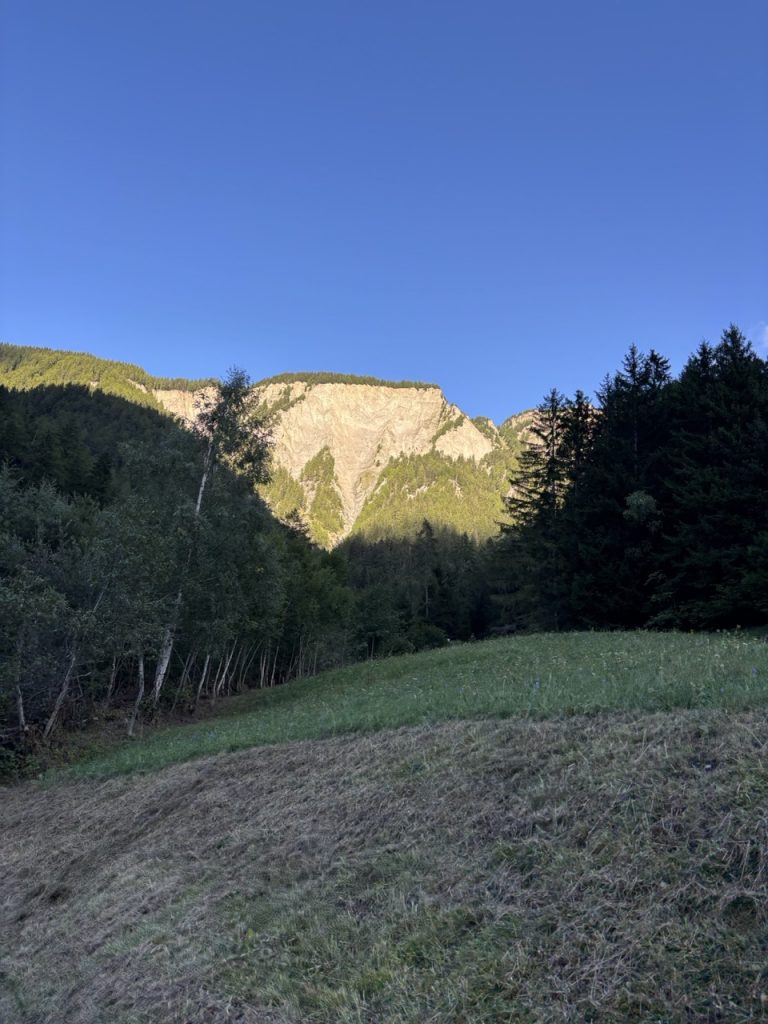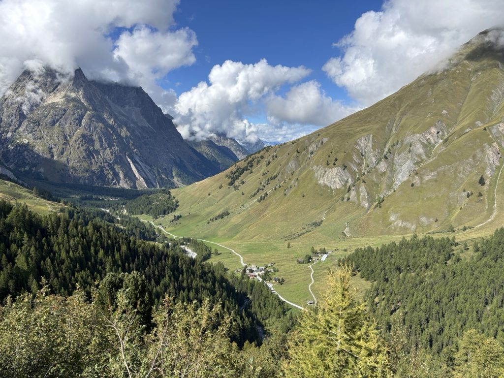 C’est l’heure de s’attaquer au Grand Col Ferret. On m’en a parlé, beaucoup parlé. Beaucoup le redoutent, le craignent, mais de mon côté, je l’avale… Il est super beau, tout de vert vêtu, et je gagne 60 places dedans. Tout se passe bien sous le soleil montagnard.