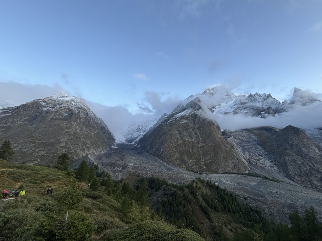 Jeudi soir repas tranquille avec les copains. Vendredi matin repos et direction Chamonix en début après-midi avec les navettes depuis Sallanches (bien plus simple qu’en voiture).