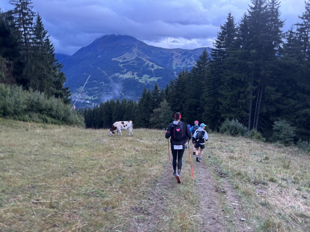Le parcours est assez roulant jusqu’au Col de la Voza première grosse ascension avec 800 m de dénivelé. Le soleil refait son apparition dans la montée et nous laisse admirer les magnifiques paysages alpins. 790ème au col ! Montée entière sans sortir les bâtons.